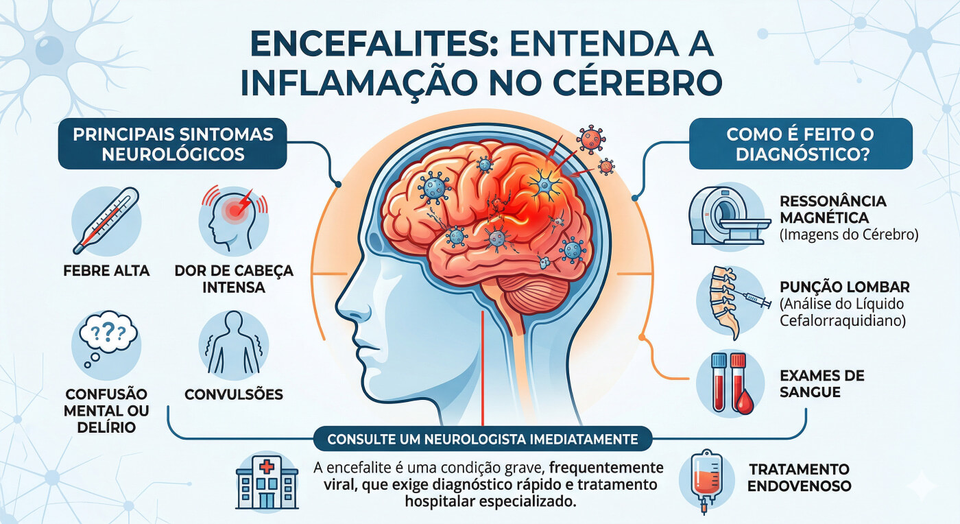 Encefalite é uma condição rara que causa inflamação do cérebro, sendo mais frequentemente causada por um vírus.